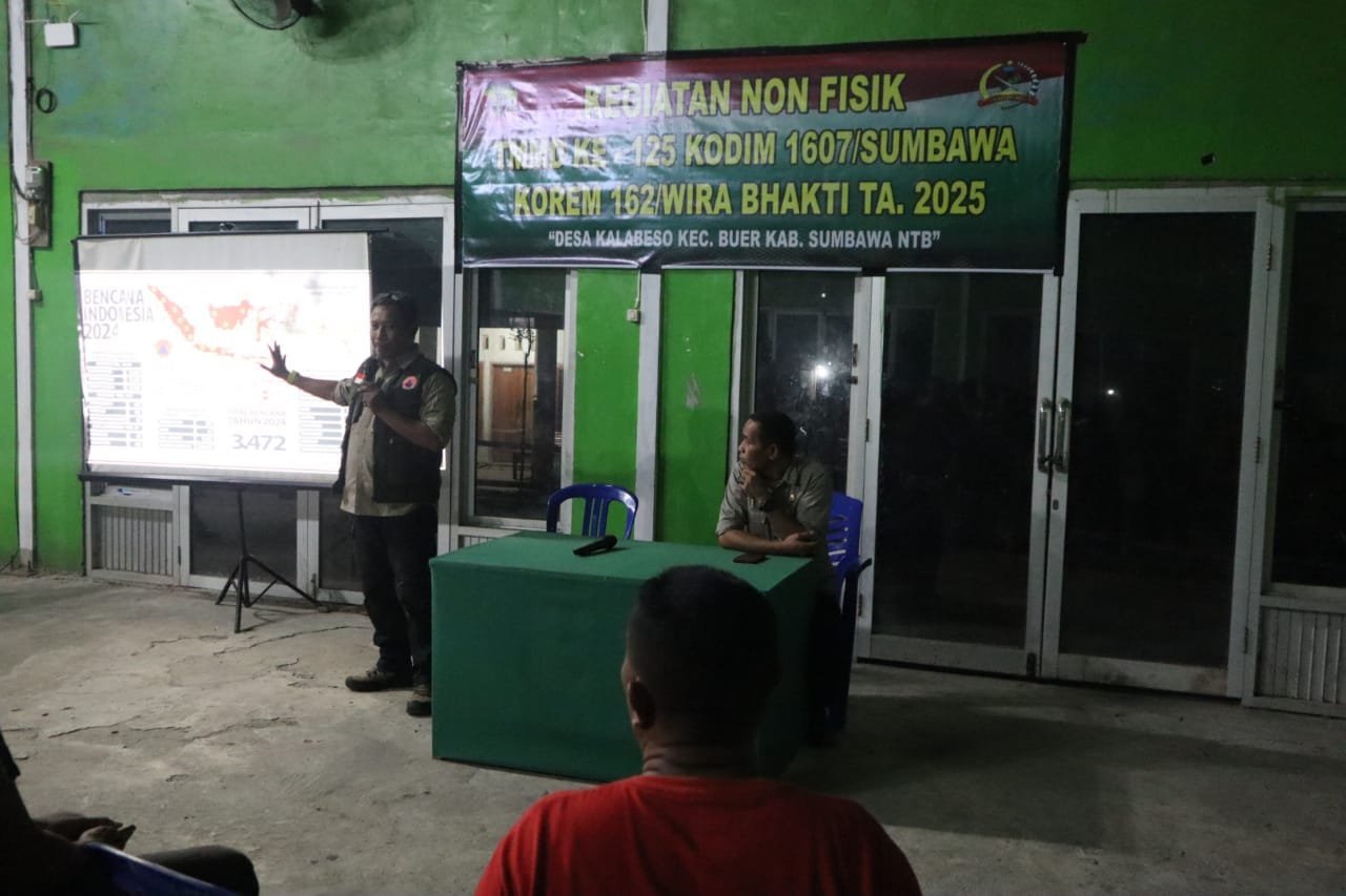 Sumbawa – NTB, 8 Agustus 2025 Menghadapi ancaman bencana alam yang kerap melanda wilayah NTB, Satgas TMMD ke-125 Kodim 1607/Sumbawa menggandeng BPBD Kabupaten Sumbawa menggelar penyuluhan tentang mitigasi dan penanganan bencana bagi warga Desa Kalabeso, Kecamatan Buer.