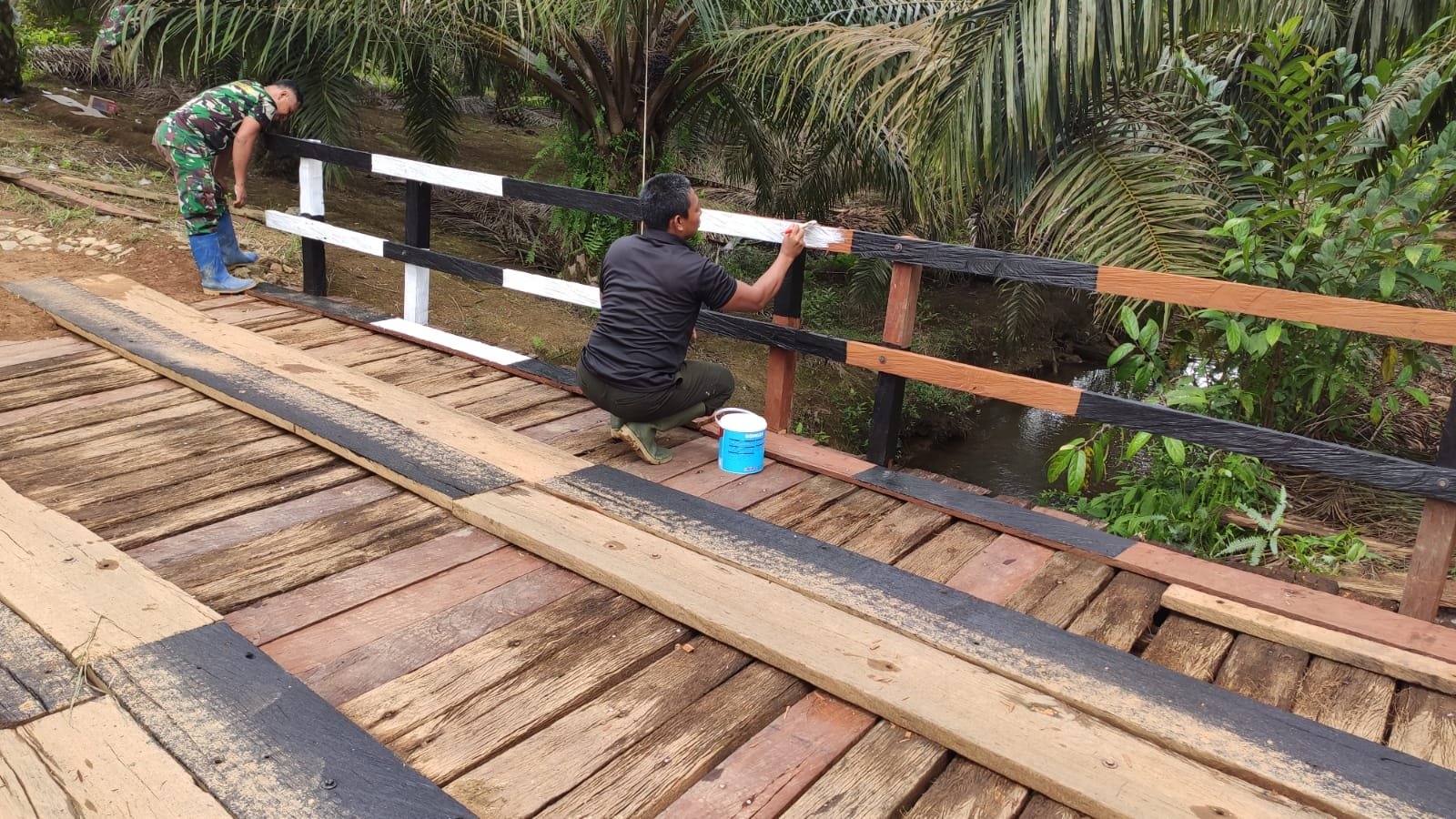 Kotawaringin Timur – Program TNI Manunggal Membangun Desa (TMMD) ke-127 yang dilaksanakan oleh Kodim 1015/Sampit kini memasuki tahap akhir pembangunan jembatan di wilayah sasaran. Tahap finishing dilakukan dengan pengecatan struktur jembatan, Senin (09/03/2026).