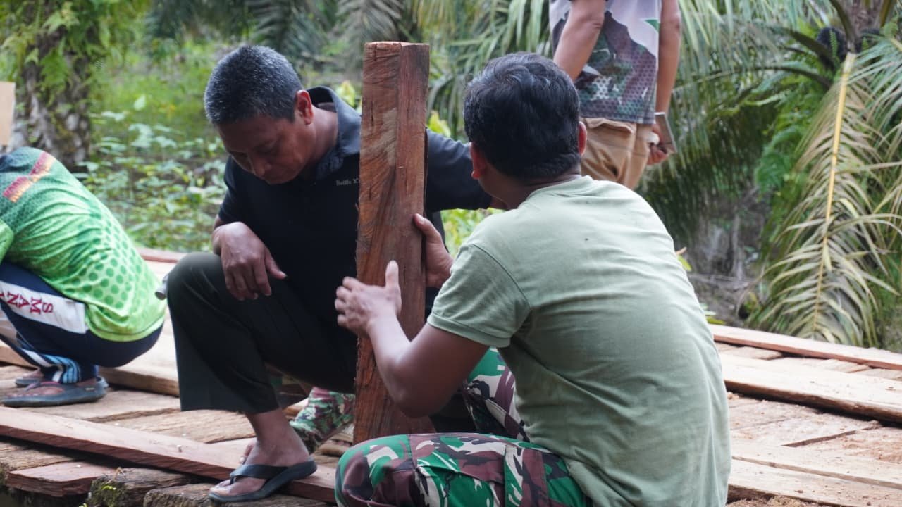 Satgas TMMD 127 Kodim 1015/Sampit Pasang Lantai dan Pagar Jembatan