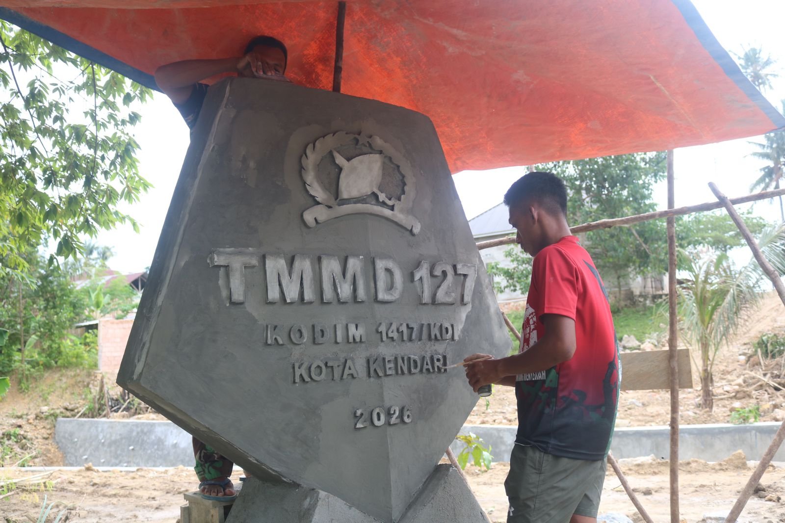 Satgas TMMD 127 Kodim 1417/Kendari Bangun Tugu Prasasti di Lokasi Program