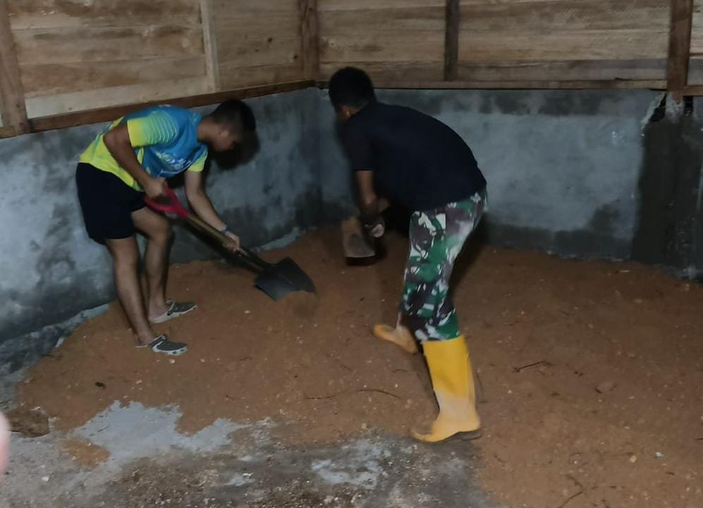 Semangat gotong royong antara TNI dan masyarakat terlihat jelas di lokasi kegiatan, di mana keduanya bahu-membahu memastikan pembangunan rumah berjalan lancar.