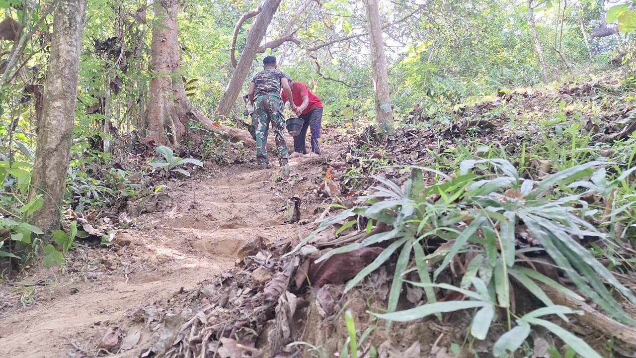 Dalam proses pengerjaan, personel Satgas TMMD terlihat bekerja bersama warga secara gotong royong. Mereka saling membantu mengangkut material seperti batu, pasir, serta semen menuju titik pembangunan yang berada di medan cukup menantang.
