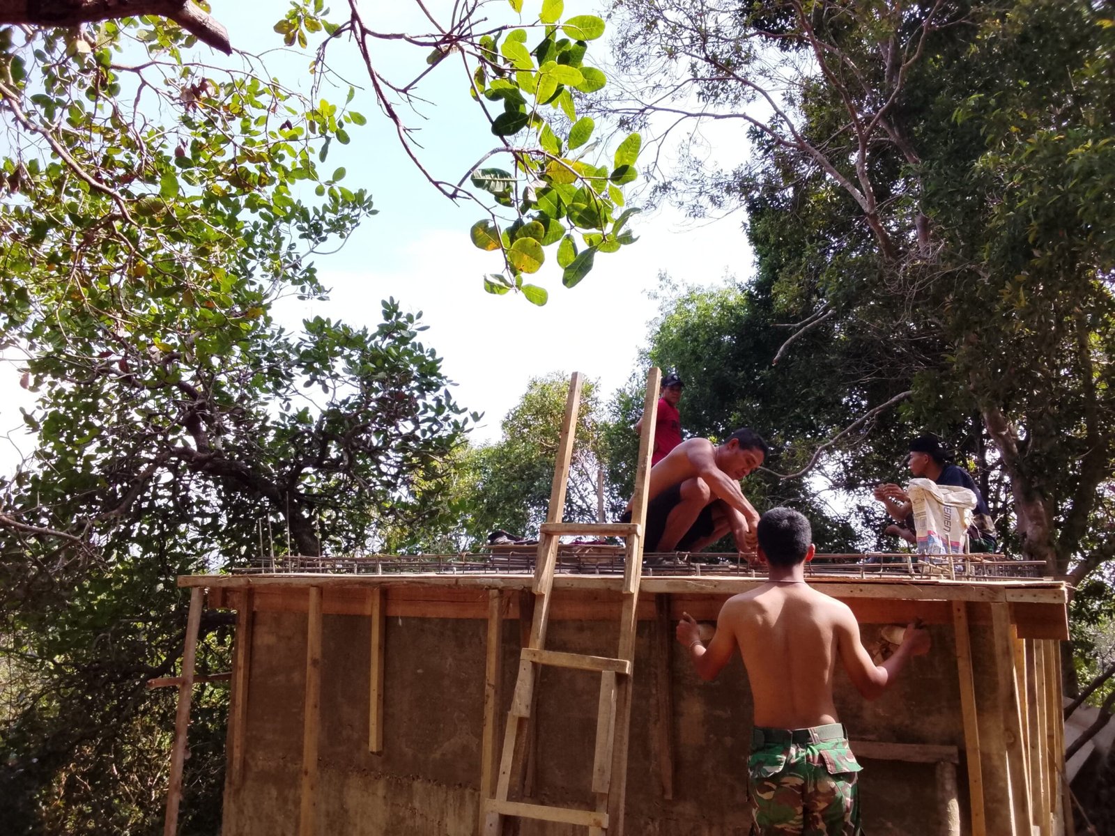 Personel Satgas TMMD bersama warga setempat bahu-membahu melanjutkan pembangunan fasilitas air bersih yang menjadi kebutuhan penting masyarakat. Pada tahap kali ini, pekerjaan difokuskan pada perakitan besi sebagai rangka utama serta persiapan pengecoran bagian penutup bak penampungan air.