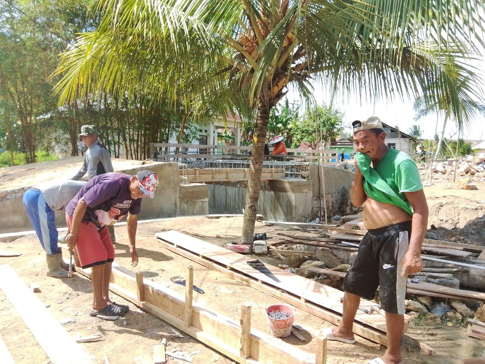 Tahapan pengecoran ini menjadi bagian krusial dalam pembangunan jembatan guna memastikan konstruksi kokoh dan tahan lama. Personel TNI bersama warga bekerja dengan penuh ketelitian agar struktur yang dibangun mampu menunjang aktivitas masyarakat dalam jangka panjang.