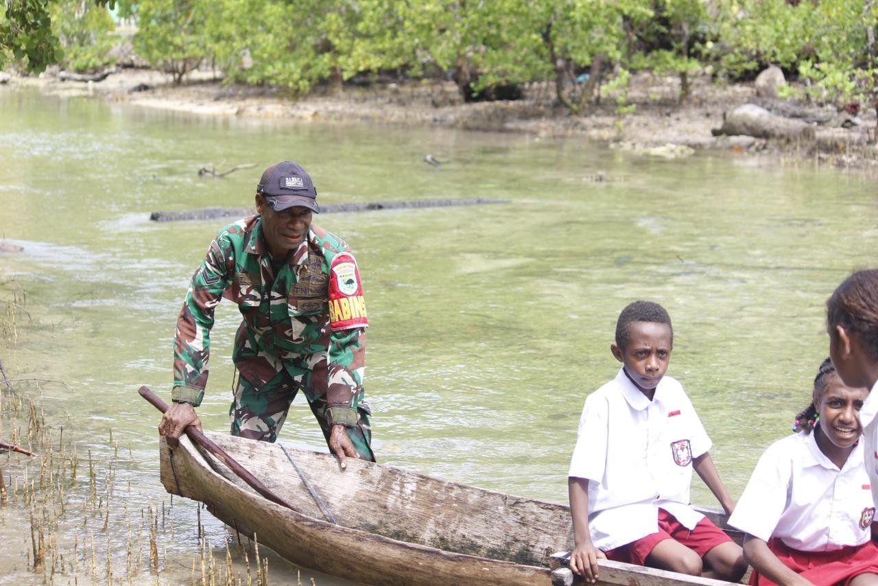 Kegiatan tersebut dipimpin oleh Sertu Daniel Ndiken yang turun langsung membantu proses penyeberangan. Mengingat akses yang harus dilalui merupakan jalur laut, anak-anak membutuhkan perahu atau sampan agar dapat sampai dengan aman ke sekolah mereka di Kampung Sisir.