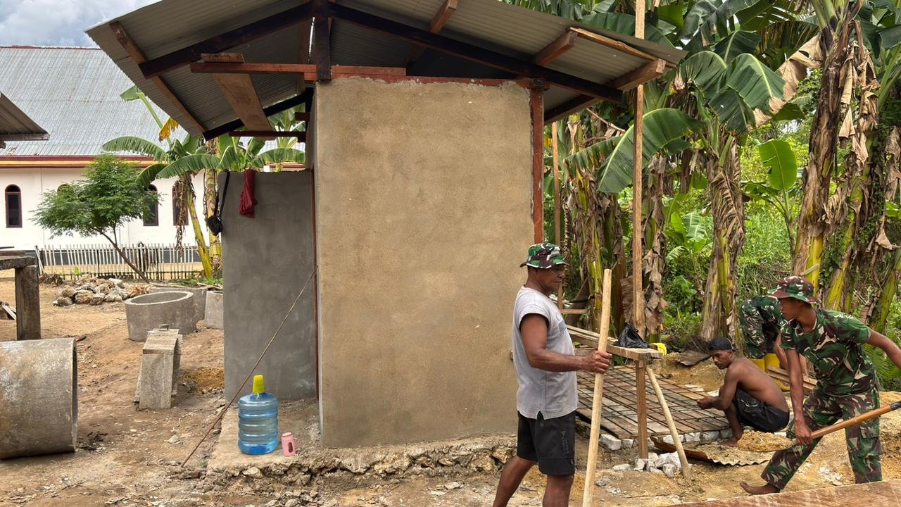 KAIMANA – Satgas TMMD ke-127 dari Kodim 1804/Kaimana kembali melanjutkan pembangunan fisik dengan melaksanakan kegiatan plaster pada 1 unit MCK yang terletak di samping Gereja Oraid Labora, Kampung Sisir, Kabupaten Kaimana, pada 25/02/2026.