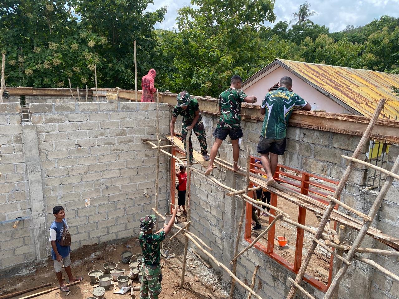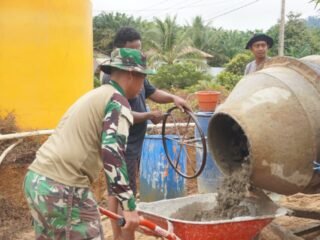 Di lokasi pembangunan, tampak personel Satgas TMMD dan warga Desa Sunkaen bekerja dalam satu komando semangat. Mereka bahu-membahu mengangkat material, mengatur alur pengecoran, dan memastikan proses berjalan lancar tanpa hambatan. Peluh yang mengalir menjadi saksi dedikasi dan pengabdian tanpa pamrih demi terwujudnya ruang belajar yang aman dan nyaman di wilayah tapal batas negeri.