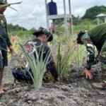 Prajurit TNI bersama warga bahu-membahu menyiapkan dan menancapkan kayu secara teratur untuk menopang tanaman. Antusiasme masyarakat terlihat tinggi karena langkah ini tidak hanya membantu secara teknis, tetapi juga menjadi bentuk nyata perhatian TNI terhadap kebutuhan petani.