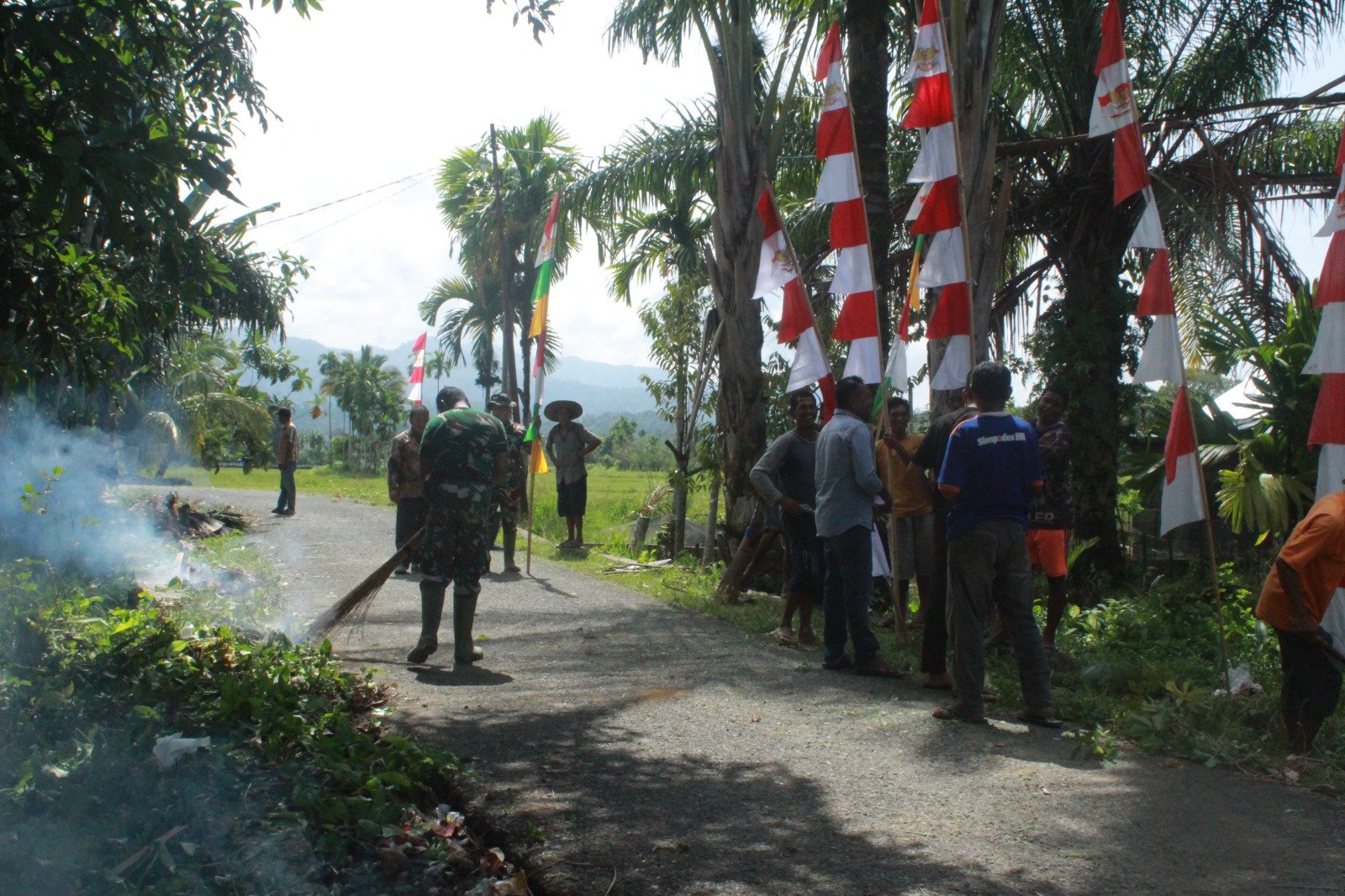 NAGAN RAYA – Menjelang penutupan kegiatan TNI Manunggal Membangun Desa (TMMD) Ke-127 Kodim 0116/Nagan Raya, Satgas TMMD bersama masyarakat melaksanakan pemasangan umbul-umbul di Desa Ujong Blang, Kecamatan Beutong, Selasa (10/3/2026).