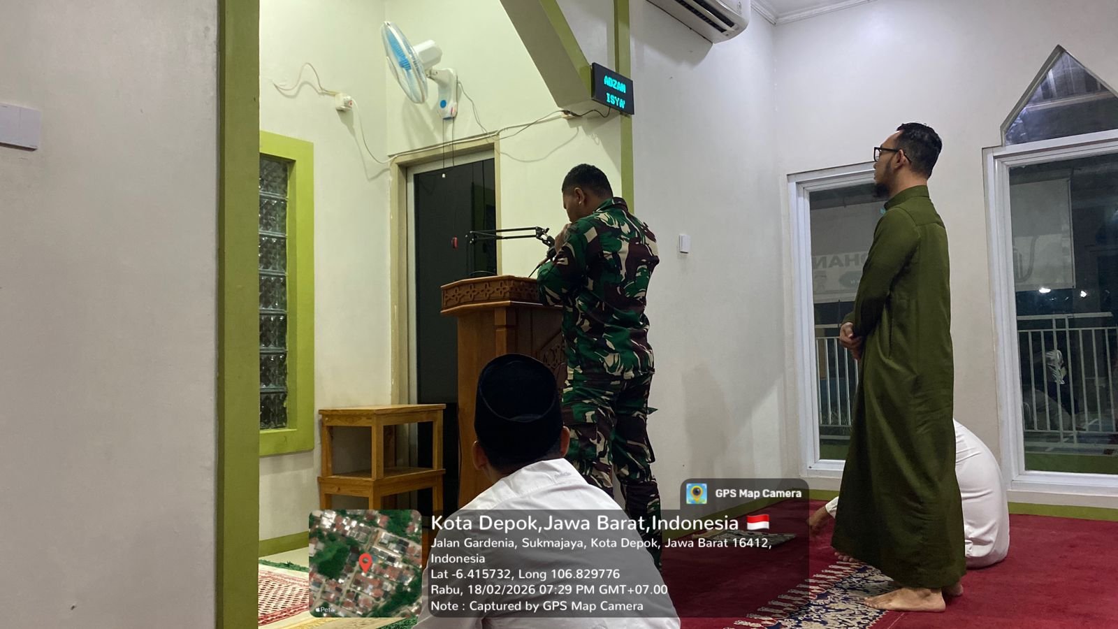 Pada Kamis malam, 19 Februari 2026, personel dari Kodim 0508/Depok melaksanakan sholat Tarawih bersama warga di Mushalla Ar Rahman, Jl. GDC Sektor Gardenia, Kelurahan Tirtajaya, Kecamatan Sukmajaya.