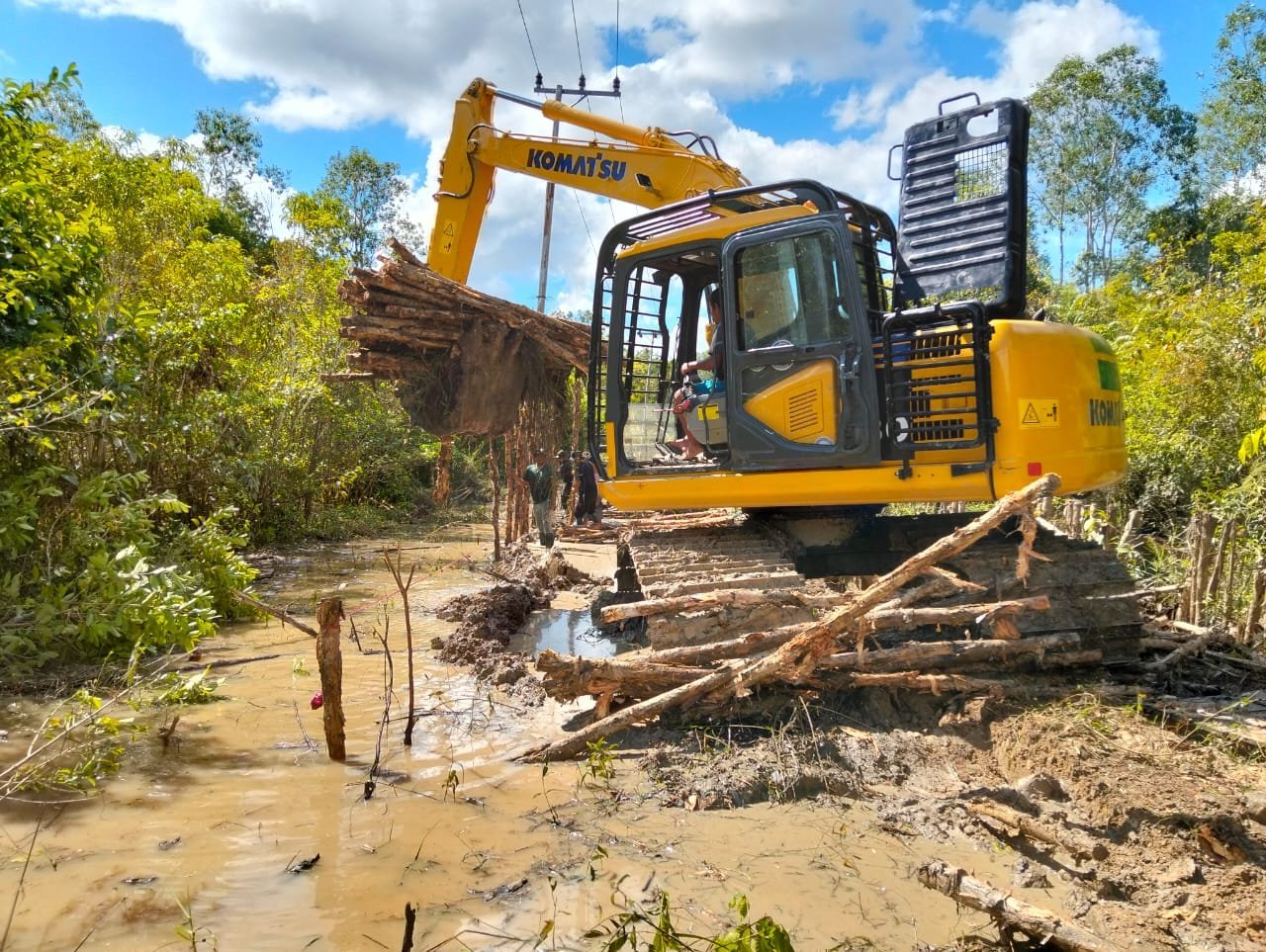 Dukungan alat berat seperti excavator sangat vital dalam mempercepat pengerjaan, terutama untuk pekerjaan berat seperti perataan tanah dan pengangkutan kayu cerucuk. Namun, sinergi antara mesin dan manusia tetap menjadi kekuatan utama dalam proyek ini.