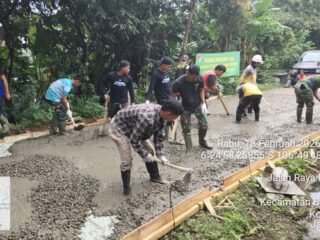 Pekerjaan ini memerlukan ketelitian, terutama dalam mencampur semen dan pasir dengan komposisi yang tepat agar teras sekolah menjadi kokoh dan tahan lama. Kekompakan TNI dan warga dalam proses ini menjadi bukti kuatnya sinergi dalam membangun fasilitas pendidikan yang lebih layak.,