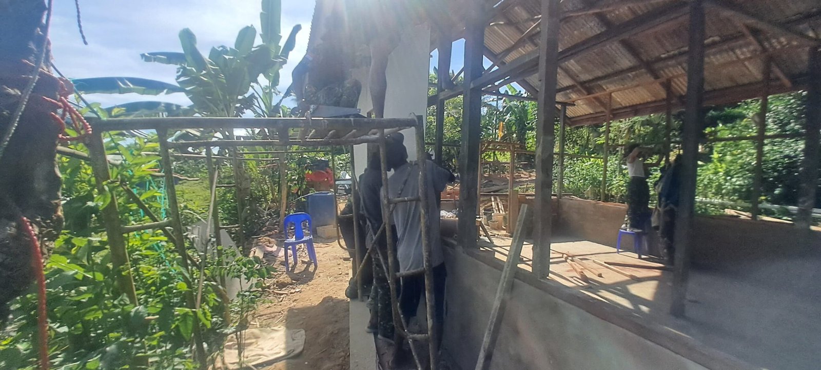 Salah satu pembangunan MCK yang sedang di kerjakan oleh satgas TMMD, masih terus berjalan, hingga 1 unit MCK hampir selesai di bangun. Sabtu ( 05/03/2024 )