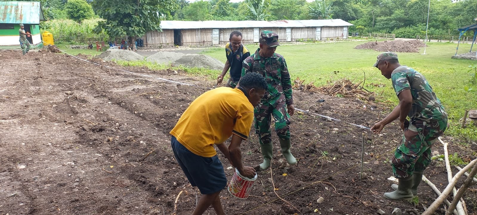 Insana Tengah, 20 Februari 2025 – Dalam rangka mendukung program TNI Manunggal Membangun Desa (TMMD) ke-123, personel Satgas TMMD dari Kodim 1618/TTU bersama masyarakat melaksanakan pengukuran lahan untuk pembangunan ruang kelas di SDN Lanaus, Desa Lanaus, Kecamatan Insana Tengah, Kabupaten Timor Tengah Utara (TTU).