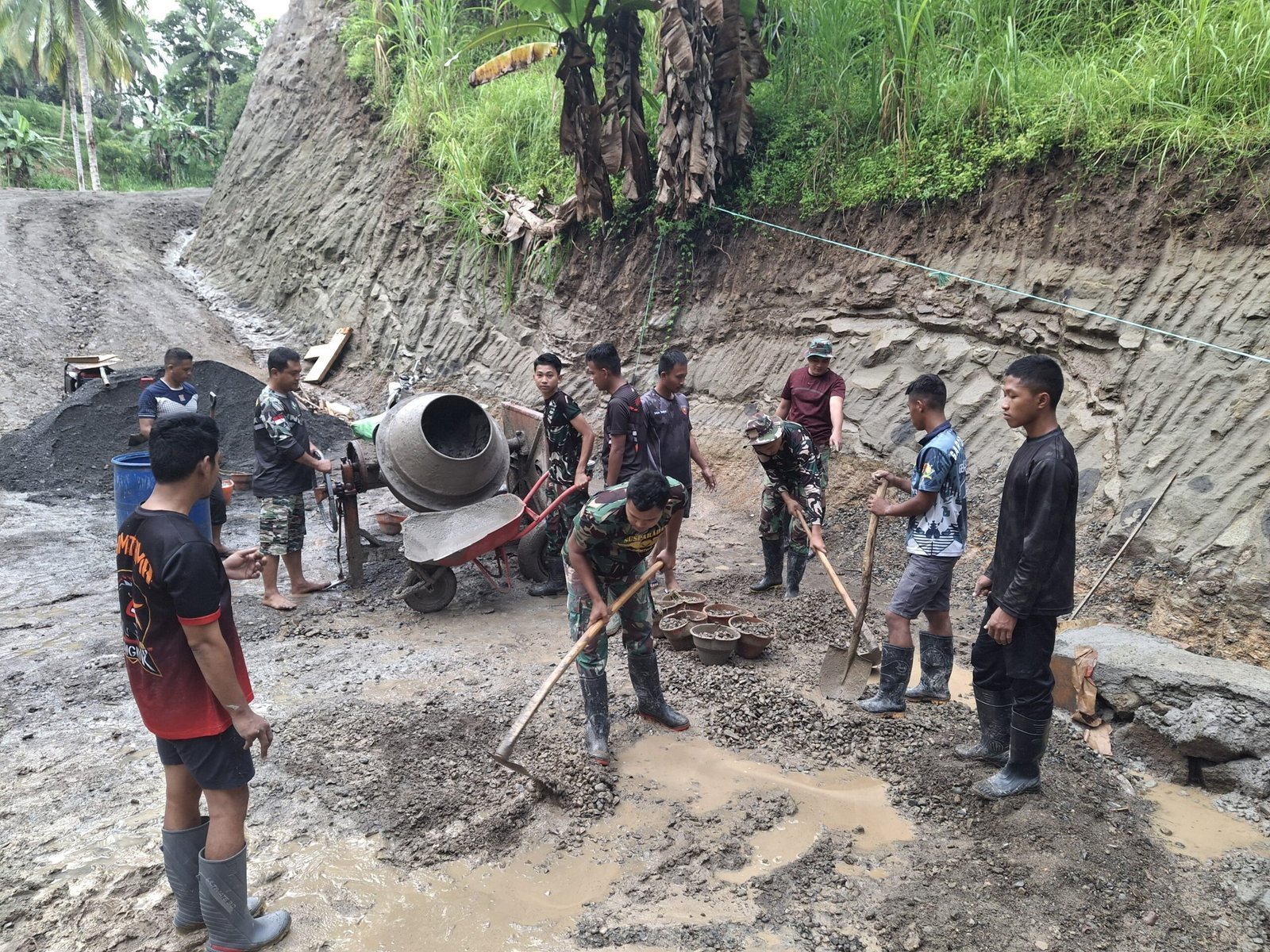 Kali ini, Satgas TMMD melaksanakan pengecoran saluran pembuangan air di area tempat cuci piring rumah sasaran. Pekerjaan ini merupakan bagian penting dari penyempurnaan fasilitas rumah agar lebih layak dan sehat untuk ditempati.