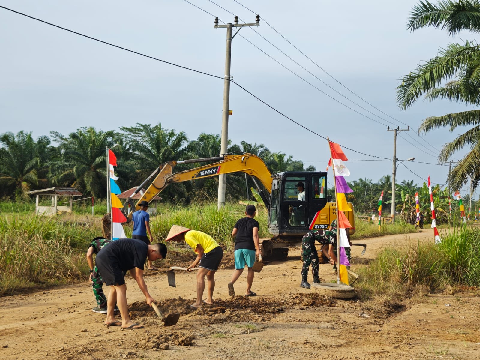 Kegiatan tersebut dilaksanakan oleh personel Satgas TMMD bersama operator alat berat sebagai bagian dari sasaran fisik pembangunan jalan penghubung antar wilayah desa. Penggunaan ekskavator dilakukan untuk mempercepat proses pengerjaan serta mendapatkan hasil perataan jalan yang maksimal.