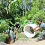 Kegiatan ini dipimpin oleh Sertu Suherman bersama personel Satgas TMMD yang fokus memastikan sistem pembuangan berjalan dengan baik dan tidak mencemari lingkungan sekitar.