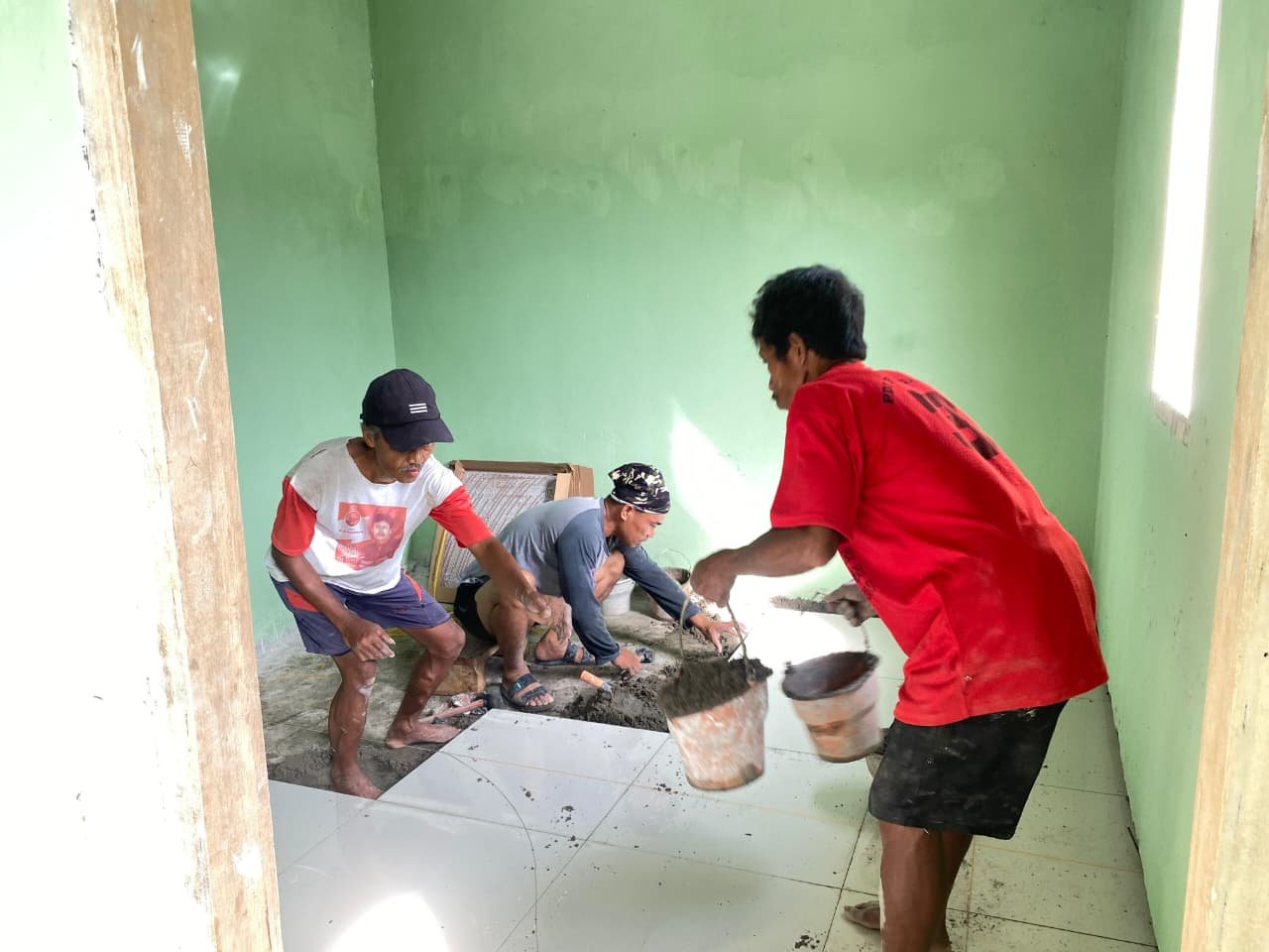 Antusiasme warga dalam membantu proses pembangunan terlihat jelas di lapangan. Mereka bekerja berdampingan dengan prajurit TNI demi mempercepat penyelesaian rumah yang nantinya akan dihuni oleh warga yang membutuhkan.