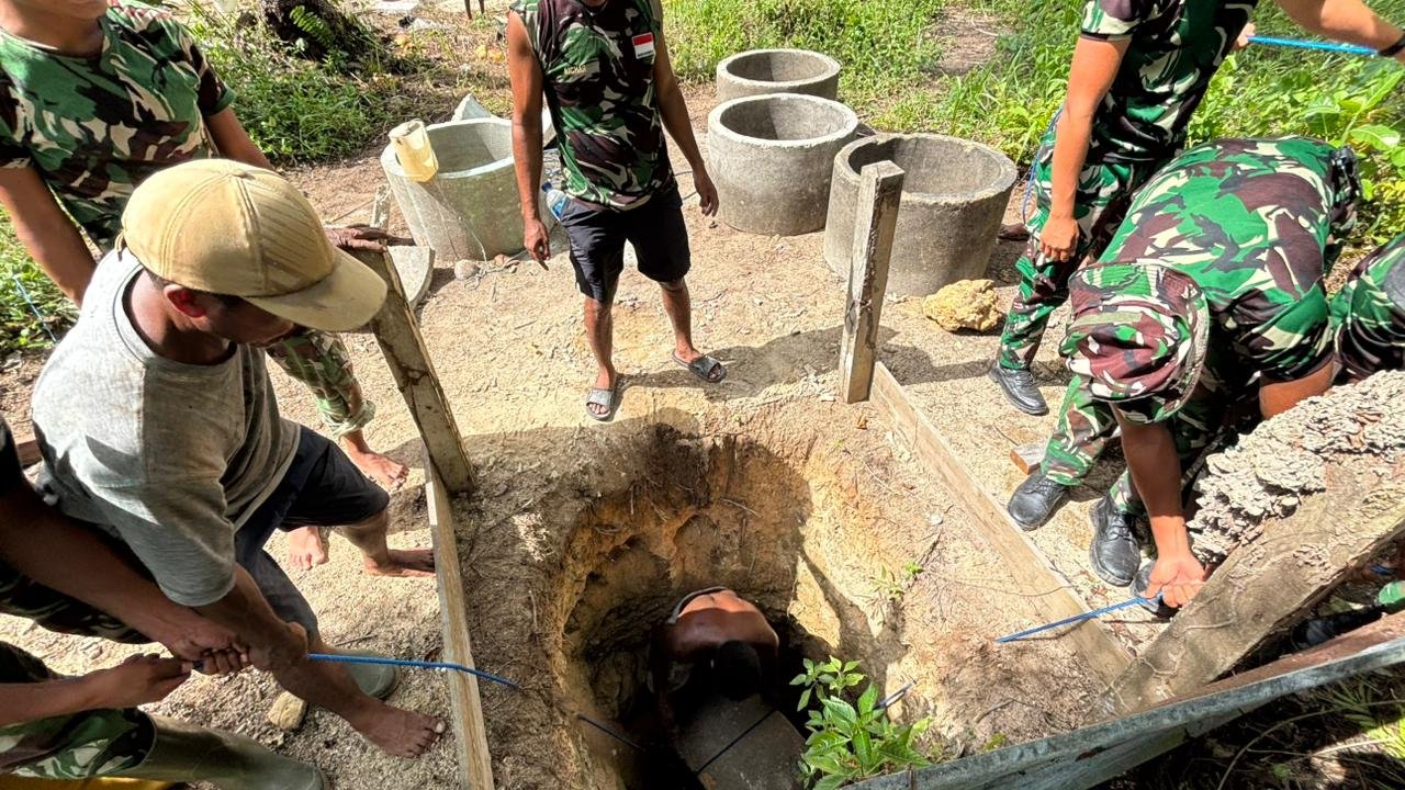 Kegiatan tersebut dipimpin langsung oleh Serda Reba selaku Babinsa Kampung Sisir. Pemasangan cincin sumur dilakukan secara bertahap untuk memperkuat struktur dinding sumur agar lebih kokoh dan aman digunakan masyarakat.