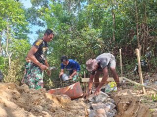 Pemasangan rangka ini menjadi fondasi penting agar pengecoran jalan bisa dilakukan secara sempurna dan hasilnya kuat serta tahan lama. Meski medan cukup menantang, anggota Satgas bersama warga tetap semangat bekerja bersama demi kelancaran proyek.