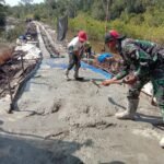 Pekerjaan dilakukan secara gotong royong bersama warga sekitar, yang menunjukkan antusiasme dan dukungan terhadap program TMMD di wilayah mereka.