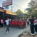 Warga kampung terlihat antusias membantu. Beberapa membantu mengangkat material, yang lain membersihkan area sekitar, sementara anak-anak penasaran mengintip proses pekerjaan.