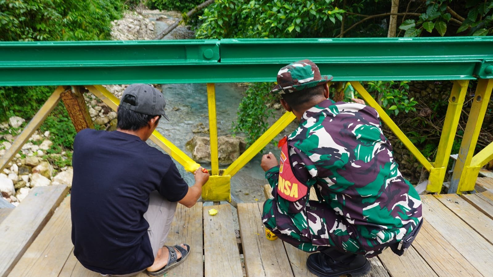 Pengecatan tiang jembatan ini dilakukan untuk memperindah serta melindungi struktur dari cuaca ekstrem agar lebih tahan lama. “Selain membangun infrastruktur yang bermanfaat bagi masyarakat, kami juga memastikan hasil pekerjaan ini bisa awet dan terawat dengan baik,” ujar salah satu anggota Satgas.
