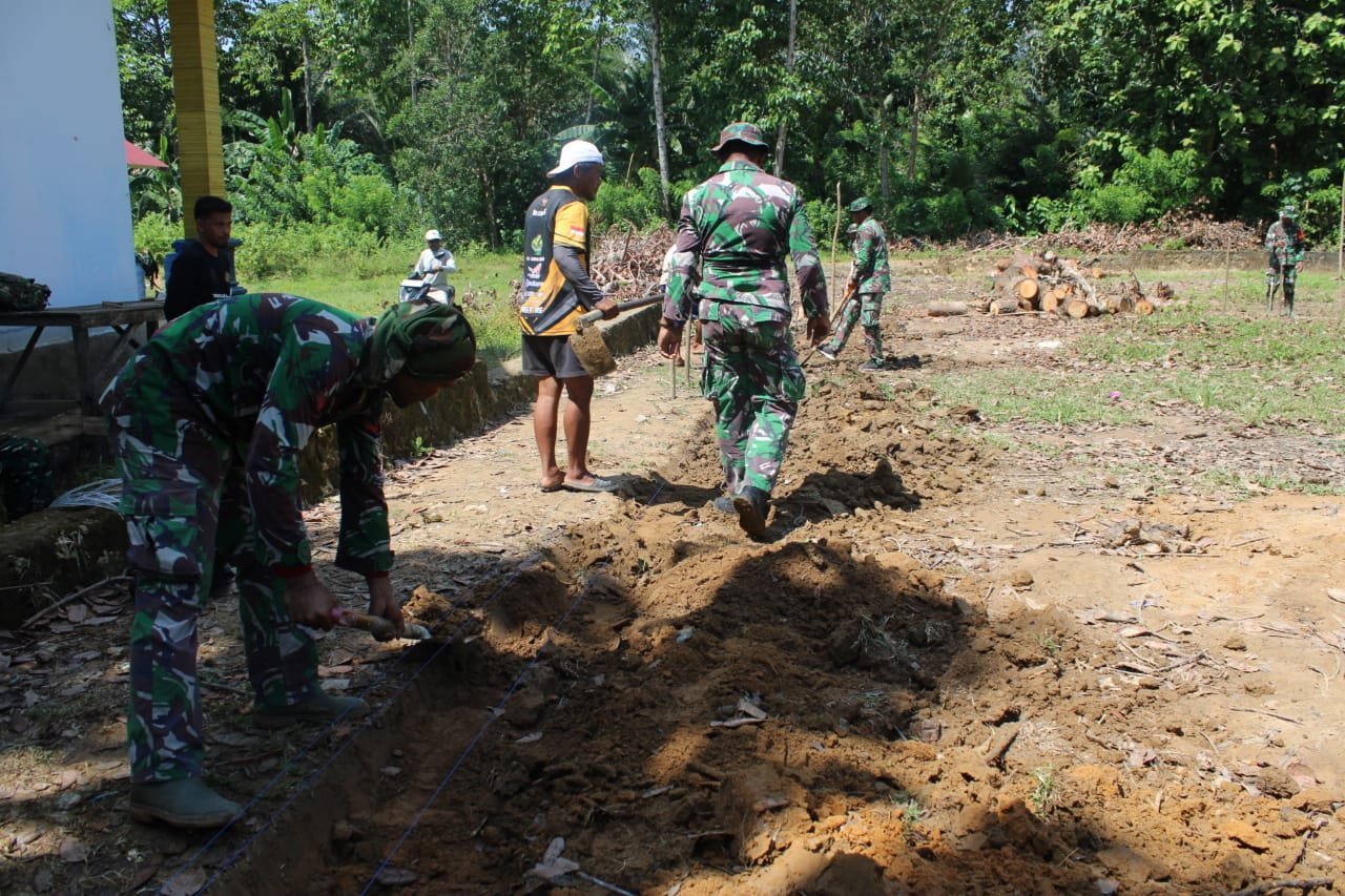 Semangat gotong royong antara Satgas TMMD dan masyarakat terlihat jelas dalam proses pembangunan ini. Warga dengan antusias membantu mengangkut material, mencampur semen, dan memastikan pondasi terbangun dengan baik.