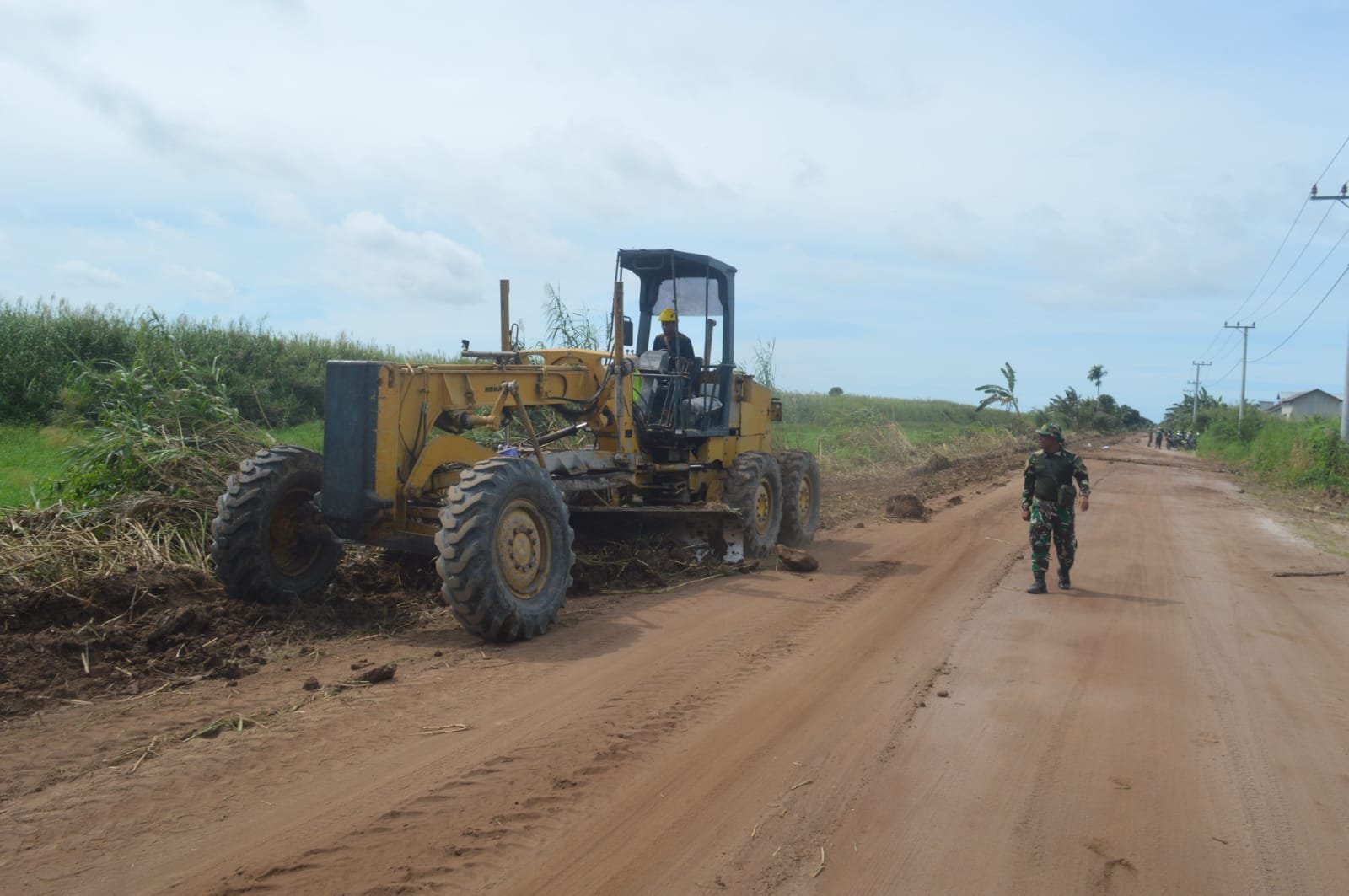 Semangat gotong royong antara Satgas TMMD dan masyarakat terlihat jelas dalam proses pembangunan ini. Warga dengan antusias membantu mengangkut material, mencampur semen, dan memastikan pondasi terbangun dengan baik.