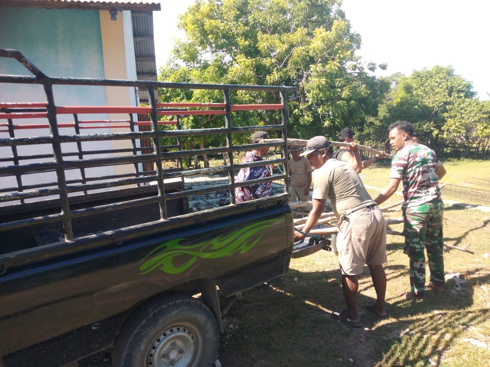Sumba Timur, 2 Maret 2025 – Satgas TNI Manunggal Membangun Desa (TMMD) ke-123 Kodim 1601/Sumba Timur terus berupaya mempercepat pembangunan Gereja GKS Hanggaroru jemaat Kaliuda, Kecamatan Pahunga Lodu. Salah satu langkah yang dilakukan adalah menurunkan bahan kayu untuk menunjang pemasangan plafon dan struktur lainnya.