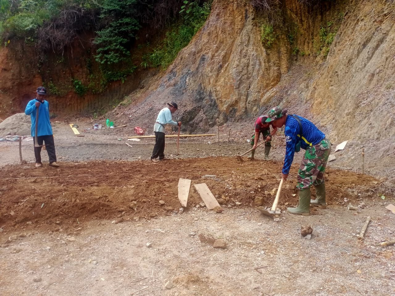 Pembersihan meliputi pemotongan rumput liar, pengumpulan daun kering, serta penyingkiran ranting pohon yang berpotensi mengganggu pengguna jalan. Masyarakat bersama personel TNI menyusuri jalan baru secara bergotong royong, memperlihatkan semangat kebersamaan dan kemanunggalan antara TNI dan rakyat.