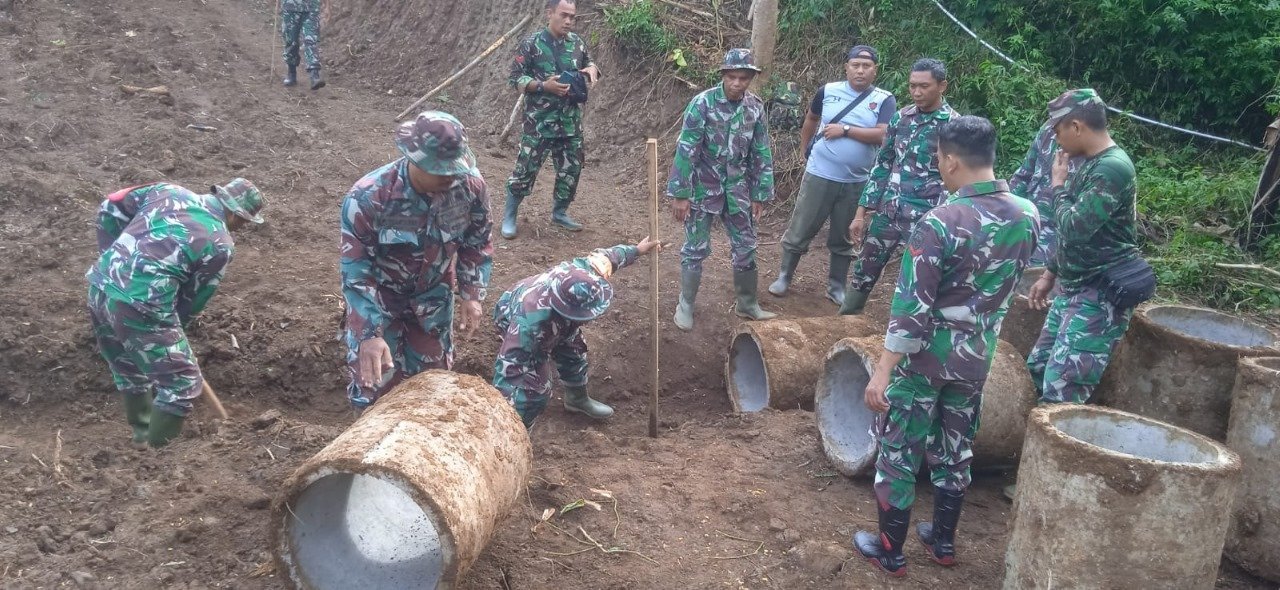 Satgas TMMD Kodim 1619/Tabanan Pasang Gorong-Gorong di Jalur Pelebaran Jalan