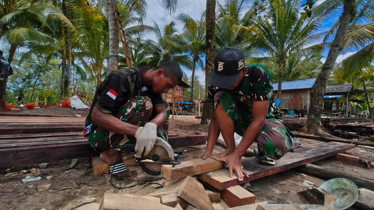 Kepala tukang TMMD, Pelda Edi Mangende, menjelaskan bahwa persiapan material menjadi langkah awal yang sangat menentukan keberhasilan pembangunan. Menurutnya, kayu yang digunakan harus benar-benar siap agar proses pembangunan dapat berjalan lancar tanpa hambatan.