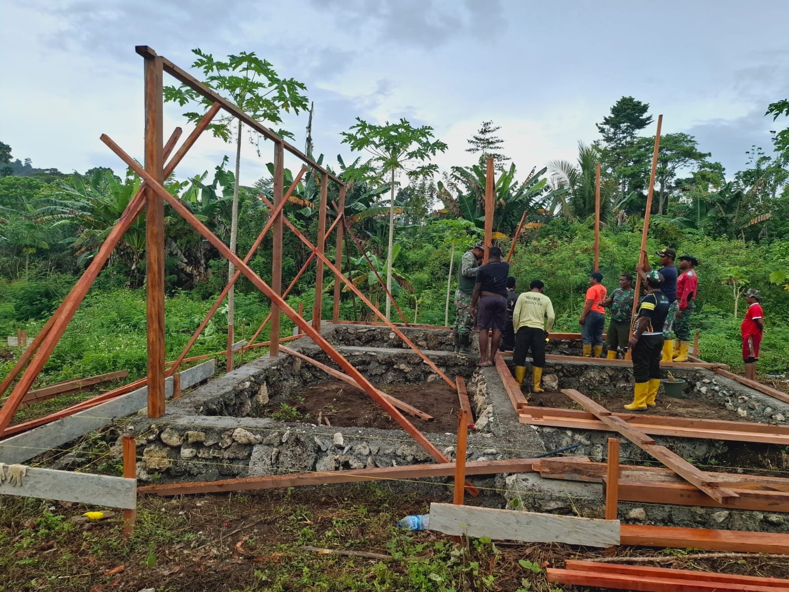 Satgas TMMD Kodim 1801/Manokwari Maksimalkan Persiapan Kayu untuk Struktur Bangunan Perbesar