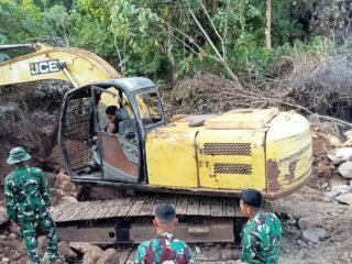 Satgas Pra TMMD Ke-125 Kodim 0309/Soloo bersama warga terus kebut pengerjaan pembukaan dan pengerasan jalan jalur pendakian Gunung Kerinci di Bangun Rejo, Nagari Lubuk Gadang Selatan, Kec. Sangir, Kab. Solok Selatan, Selasa 15 Juli 2025.