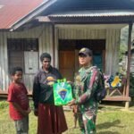 Dalam kegiatan Anjangsana, Personel Pos Malagai juga memberikan bantuan sembako kepada masyarakat Kampung Numbokawi, Distrik Malagai, Kabupaten Lanny Jaya, Papua Pegunungan, Jum’at (04/7/2025).