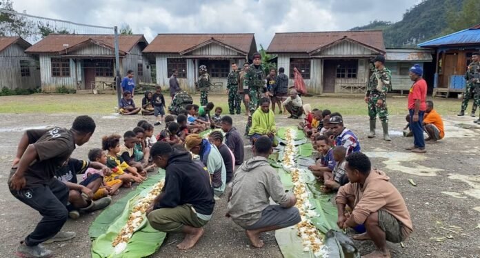 Bulangkop, Pegunungan Bintang — Pos Bulangkop Satgas Yonif 751/Vira Jaya Sakti (VJS) melaksanakan kegiatan anjangsana berupa masak dan makan bersama masyarakat di Dusun 3 Kampung Bulangkop. Kegiatan ini berlangsung penuh keakraban dan mendapat sambutan hangat dari warga yang antusias ikut terlibat dalam seluruh rangkaian kegiatan. (Minggu,5/4/2026).