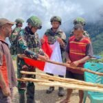 Di bawah terik matahari yang menyengat, terlihat dengan jelas para prajurit TNI yang mengenakan seragam loreng kebanggaan mereka, bergotong royong secara aktif mengangkat papan-papan kayu yang berat. Sementara itu, sebagian prajurit lainnya dengan cekatan melakukan aktivitas memaku dan menyusun setiap papan lantai tersebut dengan sangat rapi dan teratur.