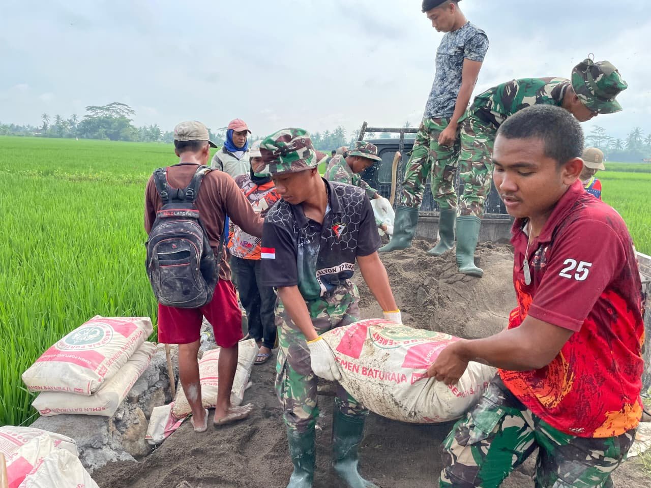 Di setiap sasaran fisik, mulai dari rabat beton, talud, hingga pembangunan RTLH dan sumur bor, terlihat kebersamaan yang begitu kuat. Seragam loreng dan pakaian sederhana warga menyatu dalam satu irama kerja. Cangkul diayunkan bersama, batu diangkat bersama, adukan semen diratakan bersama.