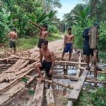 Semua material baik Kayu Galam, Pasir dan apapun yang dibutuhkan diturunkan di dermaga, kemudian dibawa ke lokasi perbaikan jembatan menggunakan perahu dengan menyusuri sungai sejauh 1,5 KM.