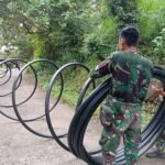 Barito Selatan – Dalam TMMD Ke- 124 Kodim 1012/Buntok terlihat semangat dan kekompakkan antara personel satgas dan masyarakat dalam pendistribusian bahan material Geotex menuju ke lokasi sasaran, di Desa Talio, Kecamatan Karau Kuala, Kabupaten Barito Selatan, Pada hari Kamis, (08/05/2025).