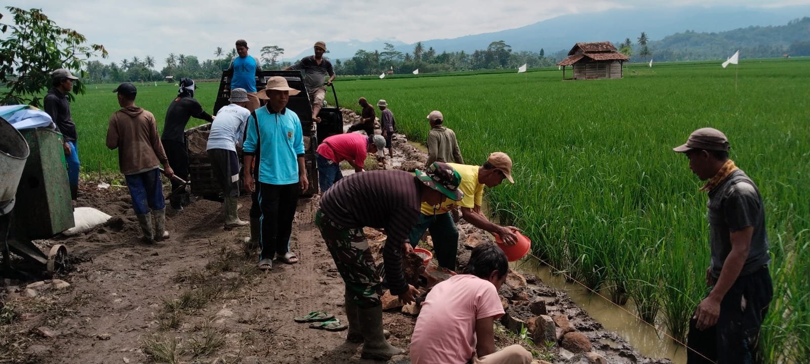 Personel Satgas TMMD bersama masyarakat bekerja bersama dalam berbagai pekerjaan fisik, mulai dari pelangsiran material, pembangunan talut, hingga pengerjaan rabat beton. Kebersamaan tersebut menjadi kekuatan utama dalam percepatan pembangunan.