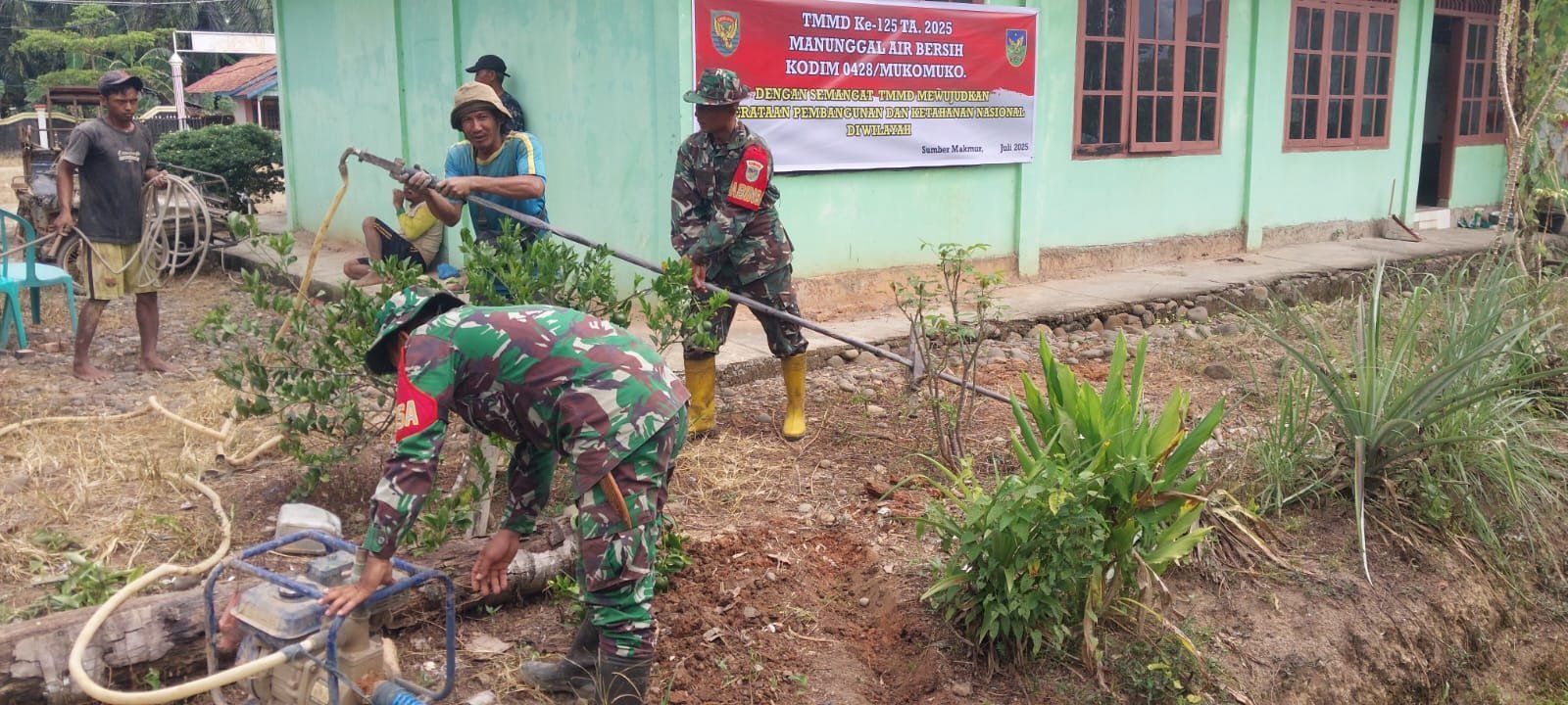 Sejak pagi terlihat personel Kodim Klungkung dipimpin langsung Danramil 1610-01/Klungkung Kapten Cpl Putu Agus dibantu warga mulai beraktivitas dalam pembangunan KDKMP Desa Jumpai.