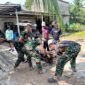 Manokwari, Kamis 23 April 2026 — Semangat tinggi ditunjukkan personel Satgas TMMD Ke-128 Kodim 1801/Manokwari dalam pembangunan rumah tipe 42 milik warga di Kampung Tanah Rubuh.