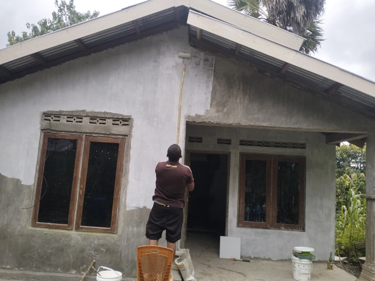 Tahapan ini menjadi bagian krusial dalam penyempurnaan bangunan. Personel Satgas TMMD bekerja dengan penuh ketelitian, memastikan setiap dinding diratakan agar hasil pengecatan maksimal dan tahan lama. Pemasangan lisplang pun dilakukan secara presisi untuk memperindah tampilan sekaligus memperkuat struktur atap rumah.