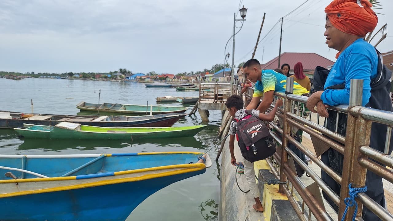 Personel TNI tampak sigap membantu masyarakat saat proses naik turun perahu di wilayah pesisir yang menjadi akses utama mobilitas warga.