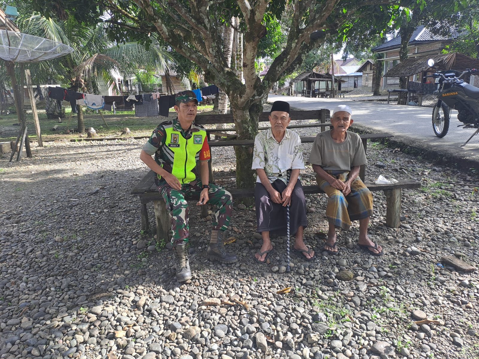 Kali ini Sertu Iwan Palentino menyambangi wilayah binaannya Desa Pasie Ara Kec. Woyla Timur. Dalam kesempatan tersebut Sertu Iwan menekankan pentingnya semangat gotong royong, saling menghormati dan membangun komunikasi yang baik antar warga.