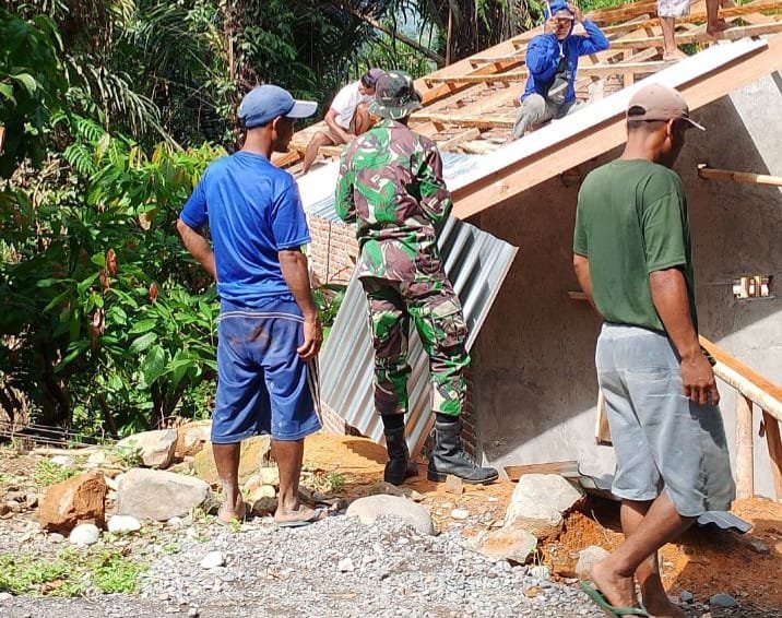 Anggota Satgas TMMD, Sertu Sri Wiyono, memanfaatkan waktu istirahat dari pengerjaan fisik untuk melakukan komunikasi sosial (Komsos) dengan masyarakat. Dalam interaksi tersebut, ia memberikan dorongan dan arahan tentang pentingnya memanfaatkan lahan pekarangan serta mengelola tanaman pangan secara mandiri.