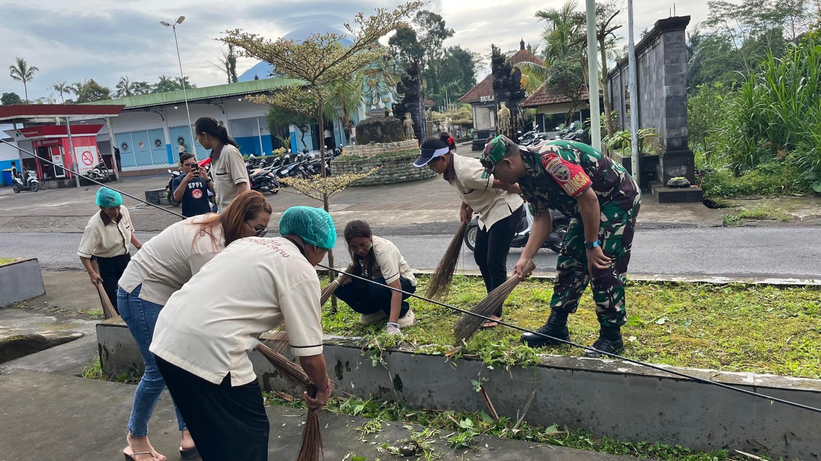 Bangli – Dalam rangka mendukung kelancaran operasional Program Makan Bergizi Gratis (MBG) sebagai bagian dari Program BGN RI, Babinsa Desa Landih, Koramil 01/Bangli, Kodim 1626/Bangli, Serma I Komang Juni Suantara, bersama Relawan SPPG Alota Agung Bali Landih melaksanakan kegiatan korve atau aksi nyata kebersihan lingkungan di areal SPPG Alota Agung Bali Landih, Desa Landih, Kecamatan/Kabupaten Bangli, Sabtu (7/2/2026).
