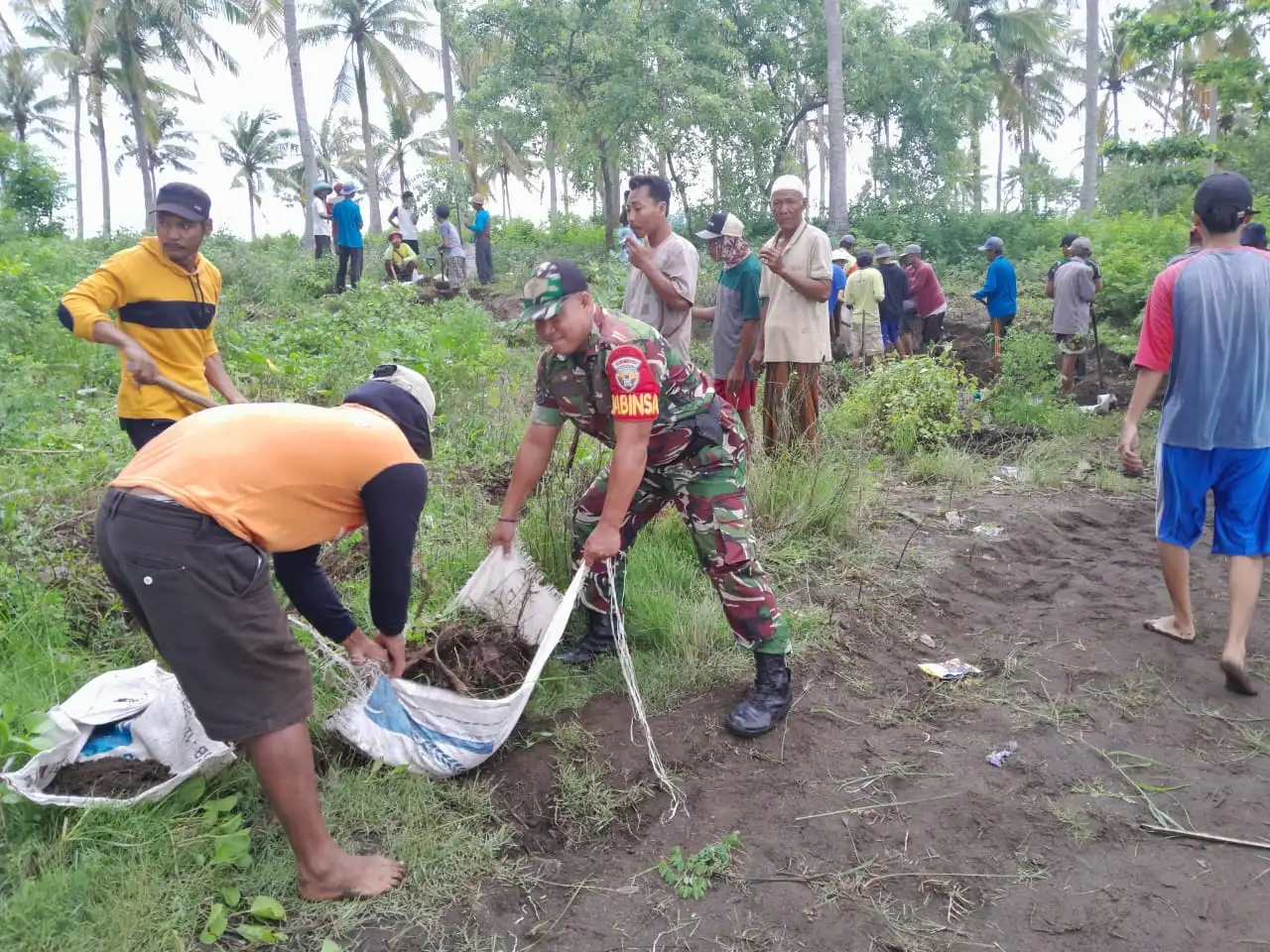 Sinergi Babinsa dan Warga Lembar Perbaiki Jalan Becek